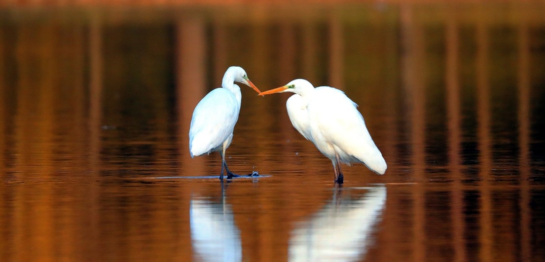目前,在許昌轄區棲息的有大白鷺、中白鷺、小白鷺和黃嘴白鷺四種,因體羽皆是全白,均稱為白鷺。它們在河湖、水塘、濕地活動,以小型魚類、蝦、蟹、蝌蚪和水生昆蟲為食。白鷺無論是飛行還是漫步,向來從容不迫,姿態優雅、挺拔。它們捕食的時候,輕輕地涉水向前,望著水里活動的小動物,猛地將“食物”啄到嘴里。它們有時佇立于水邊,等候過往的魚類;有時突然俯沖水面,叼起魚兒后瀟灑飛離。杜牧《鷺鷥》云:“雪衣雪發青玉嘴,群捕魚兒溪水中。驚飛遠映碧山去,一樹梨花落晚風。”詩句形象地描寫了白鷺捕魚的場景。 呂超峰/文 高文勝/圖