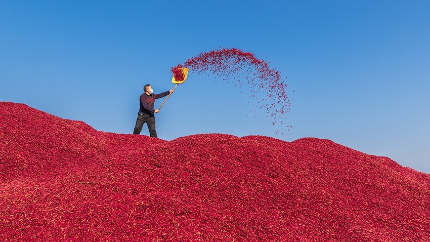 12月7日,襄城縣雙廟鄉辣椒收購站正在收儲辣椒。據了解,辣椒種植是雙廟鄉的特色產業,該鄉采取“農戶+公司”的模式,穩定種植規模,保障農民和公司利益,解決農民銷售的后顧之憂,從而調動了農民種植辣椒的積極性。今年,該鄉種植辣椒16462畝,產量約50萬公斤,產值超500萬元,有力促進了鄉村經濟發展。 本報簽約攝影師 劉喜芳 攝
