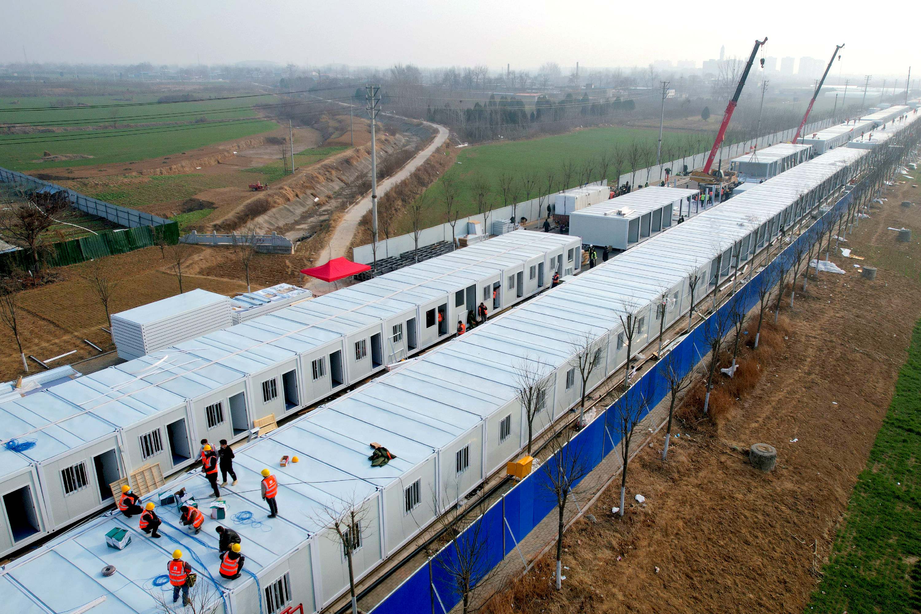 1月16日,在由中鐵七局承建的集中隔離點施工現場,工人正在精心施工。 簽約攝影師 孫玉明 攝