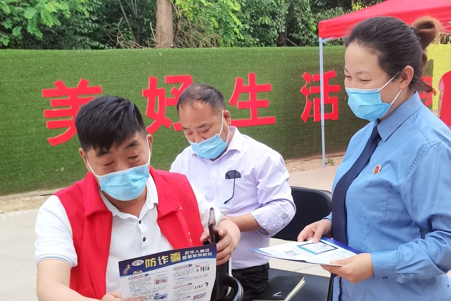 6月6日,鄢陵縣人民檢察院干警走上街頭,開(kāi)展打擊整治養(yǎng)老詐騙普法宣傳活動(dòng)。他們采取發(fā)放宣傳頁(yè)、講解典型案例等形式,提高群眾的識(shí)騙、防騙能力。解童 攝