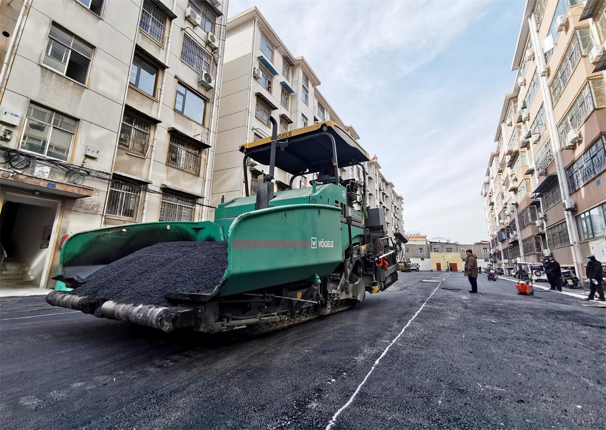 12月12日,魏都區(qū)北大街道辦事處八一社區(qū)園中園小區(qū),大型機(jī)械正在進(jìn)行鋪油作業(yè)。