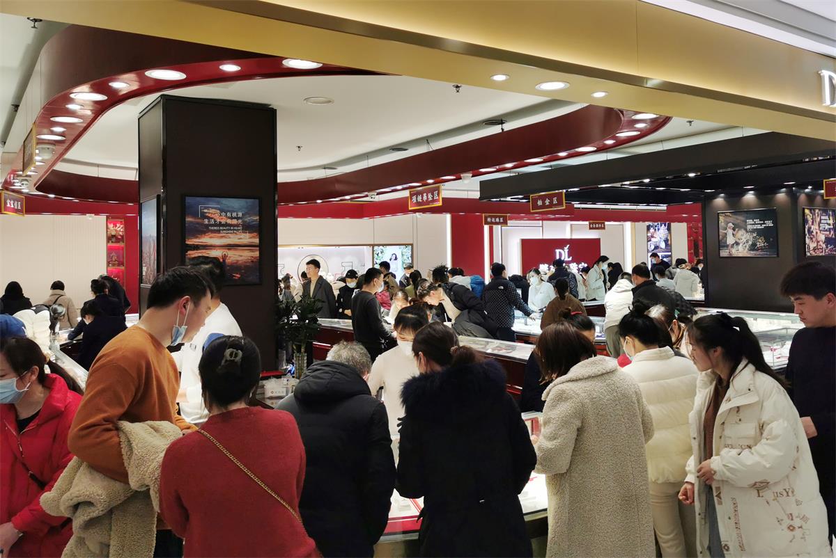 2月9日,市區(qū)一商場(chǎng)金飾專柜前,不少顧客前來選購(gòu)首飾用品。當(dāng)前,我市經(jīng)濟(jì)運(yùn)行態(tài)勢(shì)向好,市場(chǎng)消費(fèi)需求逐步回升。 本報(bào)記者 喬利峰 攝