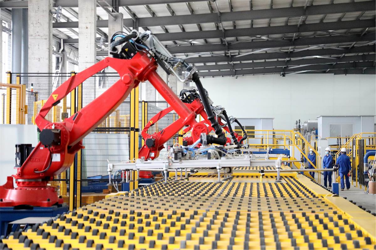 4月6日,位于襄城縣的許昌安彩新能科技有限公司,工業機器人在生產線上精細作業。該公司把創新作為引領發展的第一動力,深入貫徹河南省“數字化轉型”戰略部署,通過“生產換線”“機器換人”“設備換芯”,解決傳統玻璃企業核心痛點,讓智能制造成為企業發展的核心動力。 本報記者 喬利峰 攝