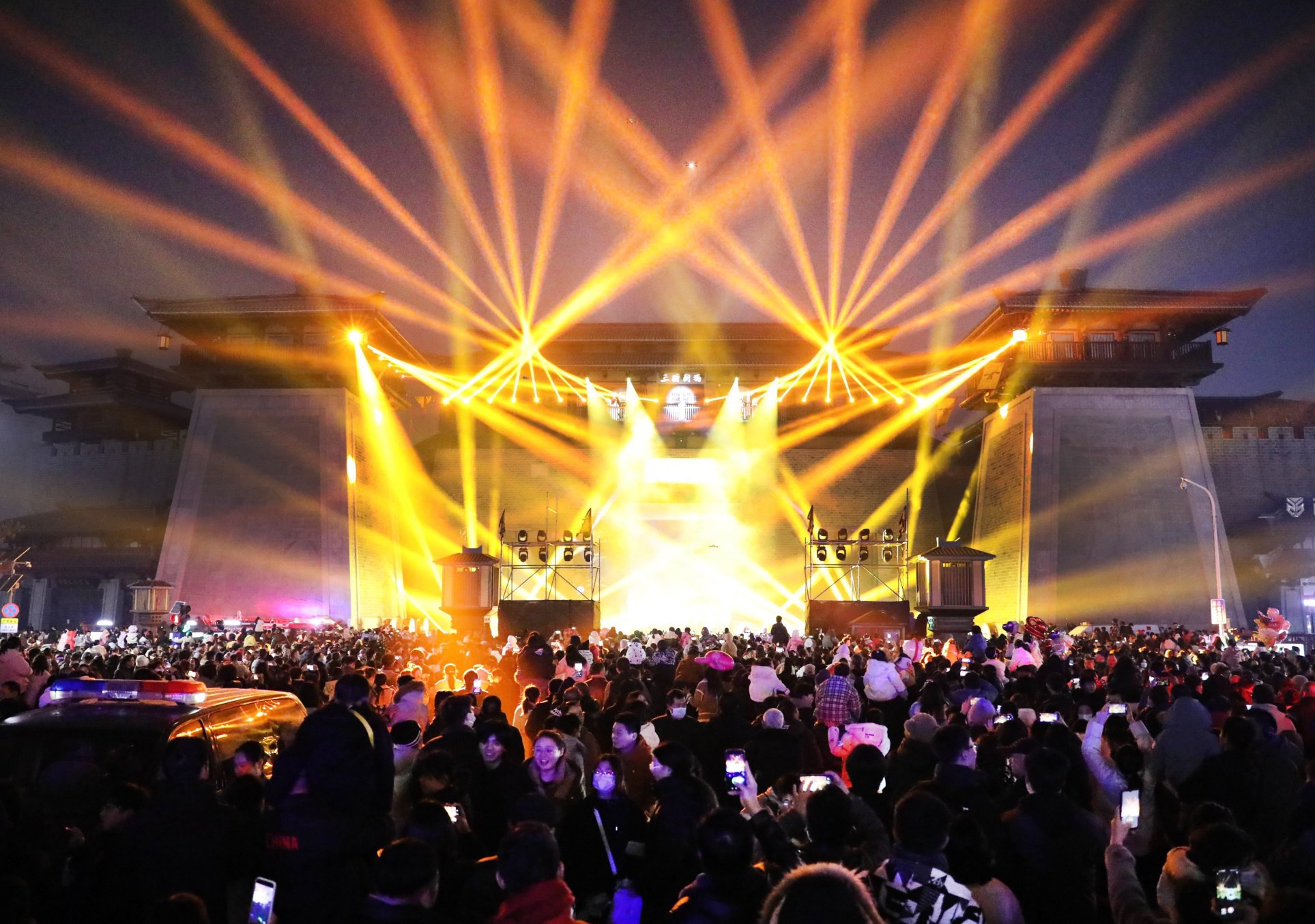 2023年12月31日晚,市區(qū)曹魏古城燈光璀璨,人頭攢動(dòng)。元旦假期期間,我市舉辦迎新春大型跨年文化演出活動(dòng),吸引眾多市民及游客前來觀看,迎接新年的到來。本報(bào)記者 喬利峰 攝