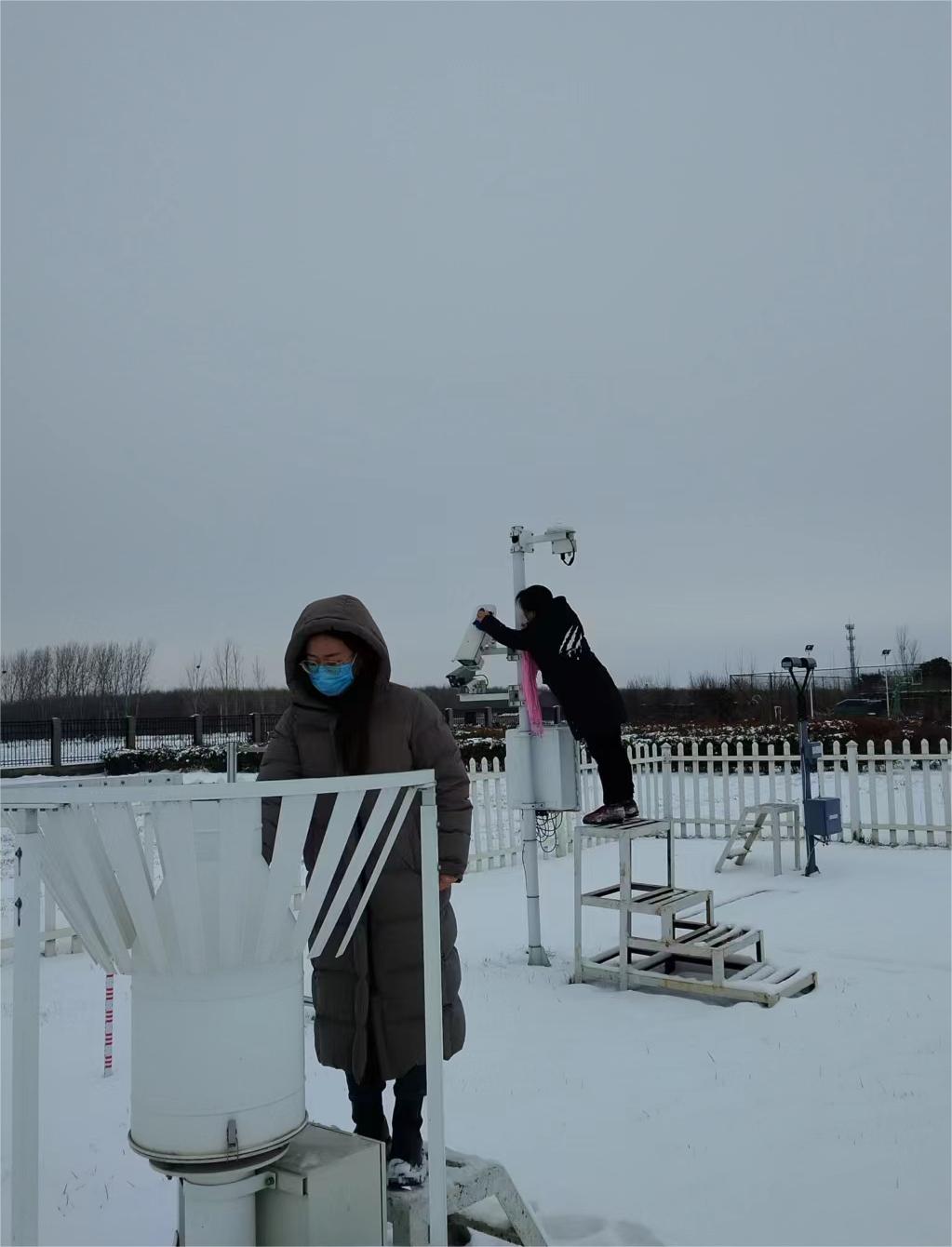 業(yè)務(wù)人員對百葉箱、稱重式雨量傳感器以及天氣現(xiàn)象視頻智能觀測儀等進(jìn)行清潔擦拭與維護(hù),對存在的隱患及時排查,以確保觀測數(shù)據(jù)傳輸及時、準(zhǔn)確,為暴雪天氣預(yù)報預(yù)警服務(wù)提供可靠保障。