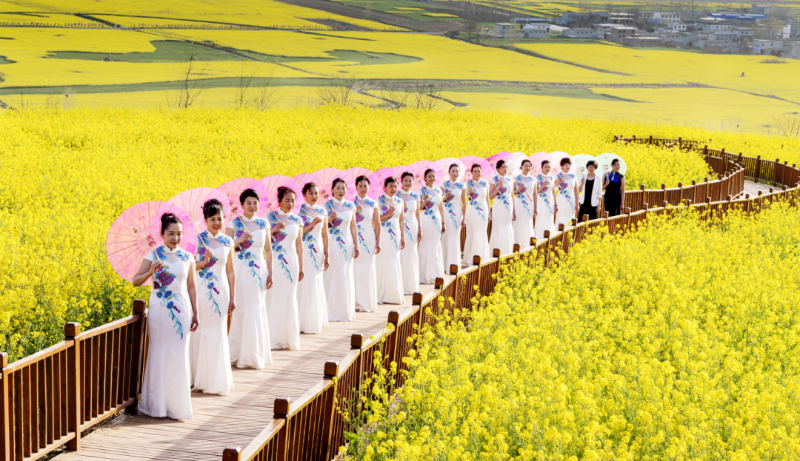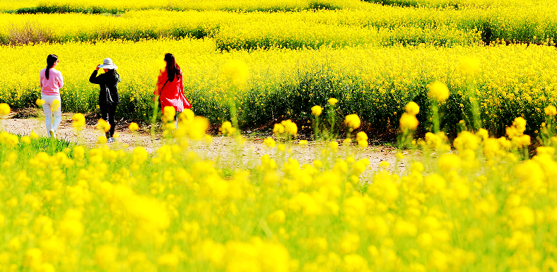 陽春三月菜花黃,正是香飄賞花時(shí),北姚村的千畝油菜花競相綻放,陣陣花香沁人心脾,花田里的油菜花蔚為壯觀。青綠色的油菜花莖托著金燦燦的小花,隨著微風(fēng)輕輕搖擺,似金色的小喇叭奏響春天的交響樂,整個(gè)大地披上了黃金甲,宛若一幅精美的油畫。