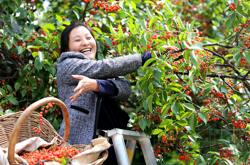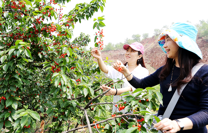 在春夏交織的首山南坡,襄城縣湛北鄉(xiāng)北姚村的千畝櫻桃園果實(shí)累累,景色壯觀,吸引眾多游人前來采摘櫻桃。首山櫻桃歷史悠久。500年前的明代,首山這一帶就開始種植櫻桃,由于這里的櫻桃汁水清澈透亮、甘甜無比,因此成為嘉靖年間的貢品。首山櫻桃也因此身價(jià)倍增,久負(fù)盛名。