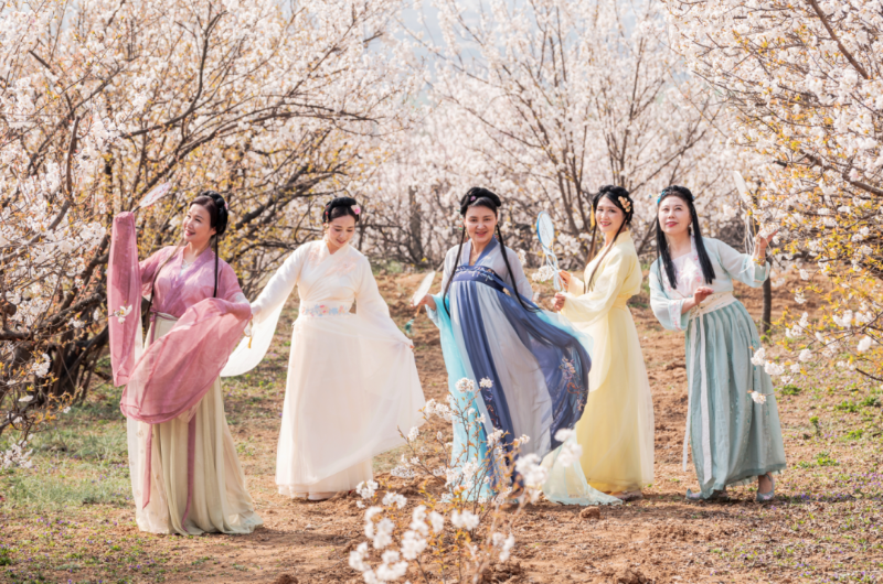 時(shí)下,襄城縣湛北鄉(xiāng)北姚社區(qū)櫻桃溝1200余畝的櫻桃花競相開放。在櫻桃花盛開之時(shí),在櫻桃溝的房前屋后一群身著漢服的女子如仙子般漫步其間,開啟了一場櫻桃花與漢服的美麗之約。