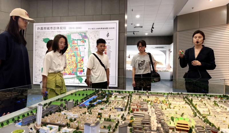 活動中,同學們先游覽了護城河,觀賞了兩岸風光。尤其是春水橋、西關橋以及建設橋附近的三國故事主題浮雕,給他們留下了深刻的印象。隨后,同學們又參觀了許昌市規劃展覽館,聆聽講解、觀看展臺、研究沙盤,全方位了解了許昌城市發展變遷的歷史。