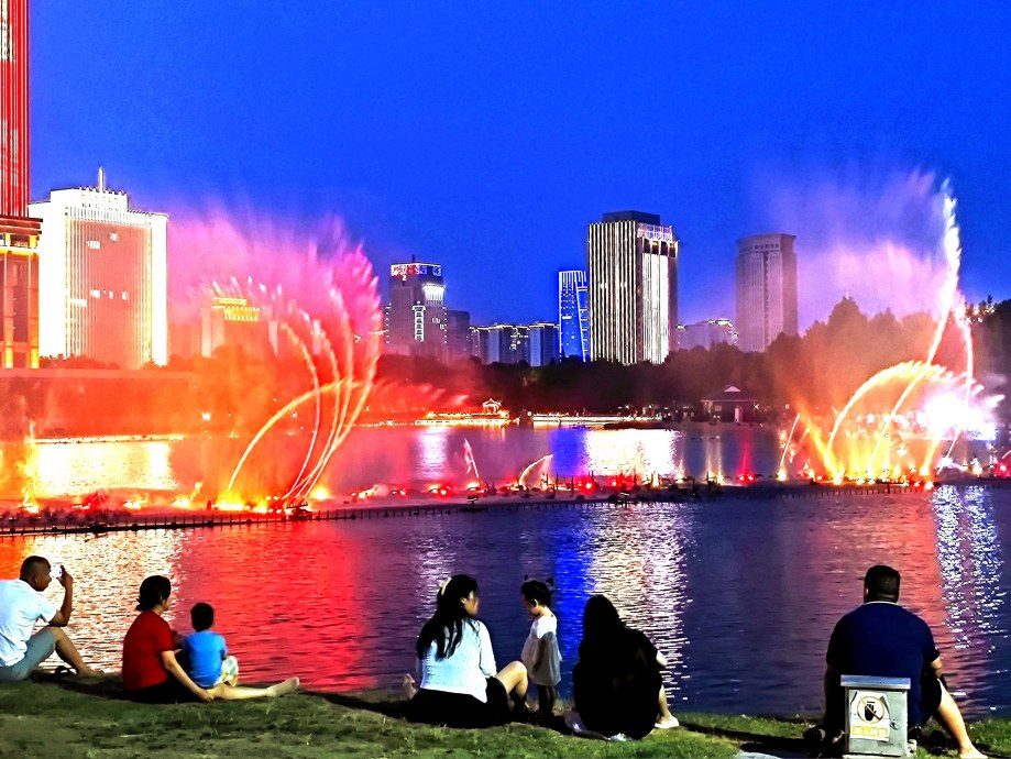 “星繁愁晝熱,露重覺荷香。”夜幕下的護(hù)城河流光溢彩,游船、荷花、拱橋……沿河漫步,清爽的荷風(fēng)撲面而來,白天的燥熱一掃而光。市區(qū)的公園、游園里,廣場(chǎng)舞愛好者聚集在一起,隨著音樂翩翩起舞,城市的夜晚也跟著律動(dòng)起來。