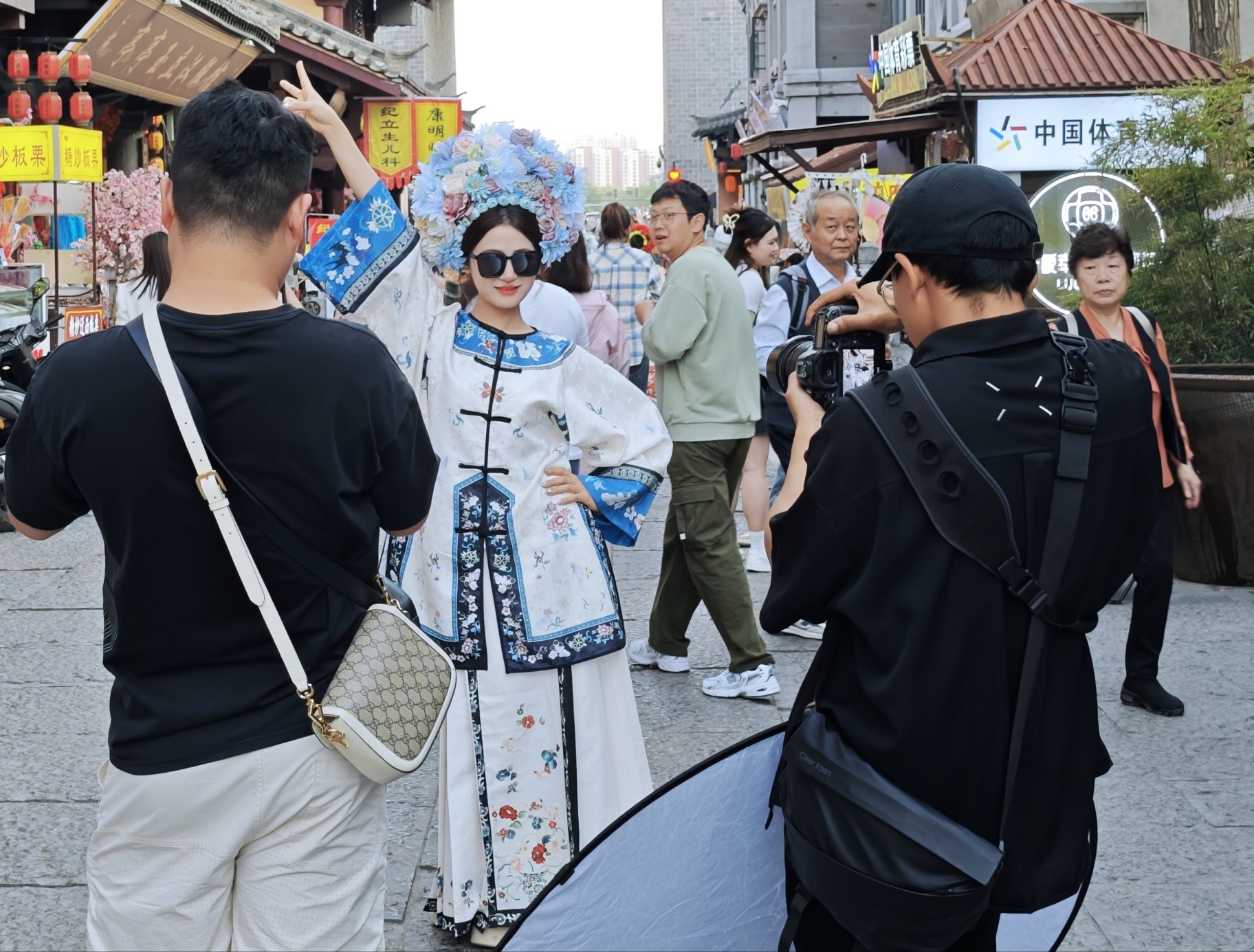 “我在微信朋友圈里看到了朋友在曹魏古城拍攝的照片。她的漢服妝造很驚艷,與曹魏古城的建筑風格相得益彰,今天我特意來感受一下濃郁的三國文化氛圍。”在曹魏古城南大街一家漢服店內,來自武漢的游客張薇薇一邊卸妝一邊對記者說。張薇薇表示,她來許昌之前就做好了“旅游攻略”,其中穿漢服游曹魏古城、品嘗美食、觀看演出是“重頭戲”,一天游玩下來,她感覺不虛此行。
