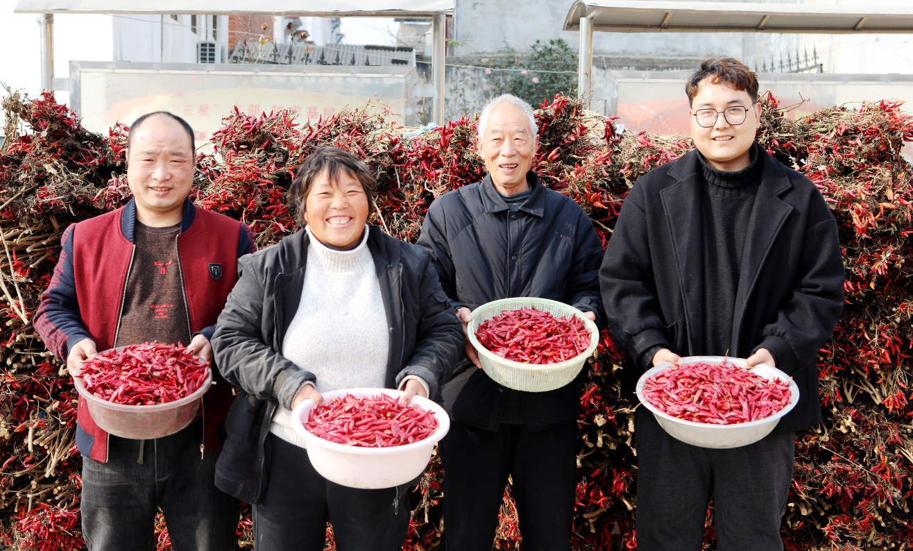 26歲的李焱在一群摘辣椒的老年人中格外顯眼。“我在市區(qū)從事銷售工作,這兩天不忙,就回來幫助家人摘辣椒。”李焱說,他家今年種了十幾畝辣椒,以往要背到平房上晾曬。有了這個廣場,大家晾曬農(nóng)作物方便多了。