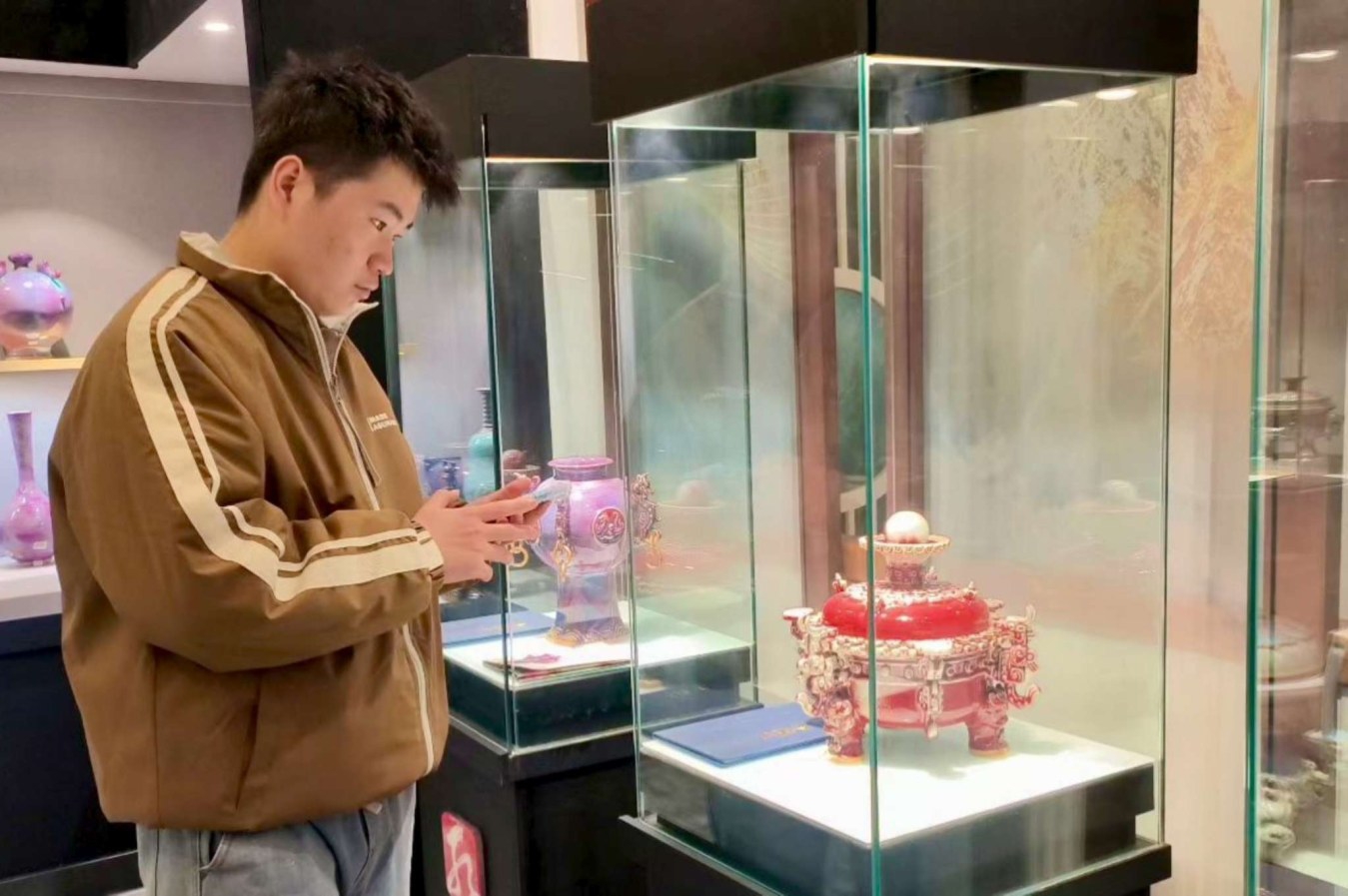 12月23日,許昌職業(yè)技術(shù)學(xué)院組織陶瓷設(shè)計(jì)與工藝專(zhuān)業(yè)在校生,走進(jìn)市區(qū)孔家鈞瓷展廳,開(kāi)啟了一場(chǎng)沉浸式的非遺文化之旅。此次研學(xué)活動(dòng)將課堂知識(shí)與社會(huì)實(shí)踐相結(jié)合,不僅讓學(xué)生深入領(lǐng)略了禹州鈞瓷窯變的神奇,也開(kāi)闊了視野、增長(zhǎng)了見(jiàn)識(shí),更讓大家體會(huì)到中華優(yōu)秀傳統(tǒng)文化的獨(dú)特魅力與深厚底蘊(yùn)。本報(bào)記者 黃增瑞 攝