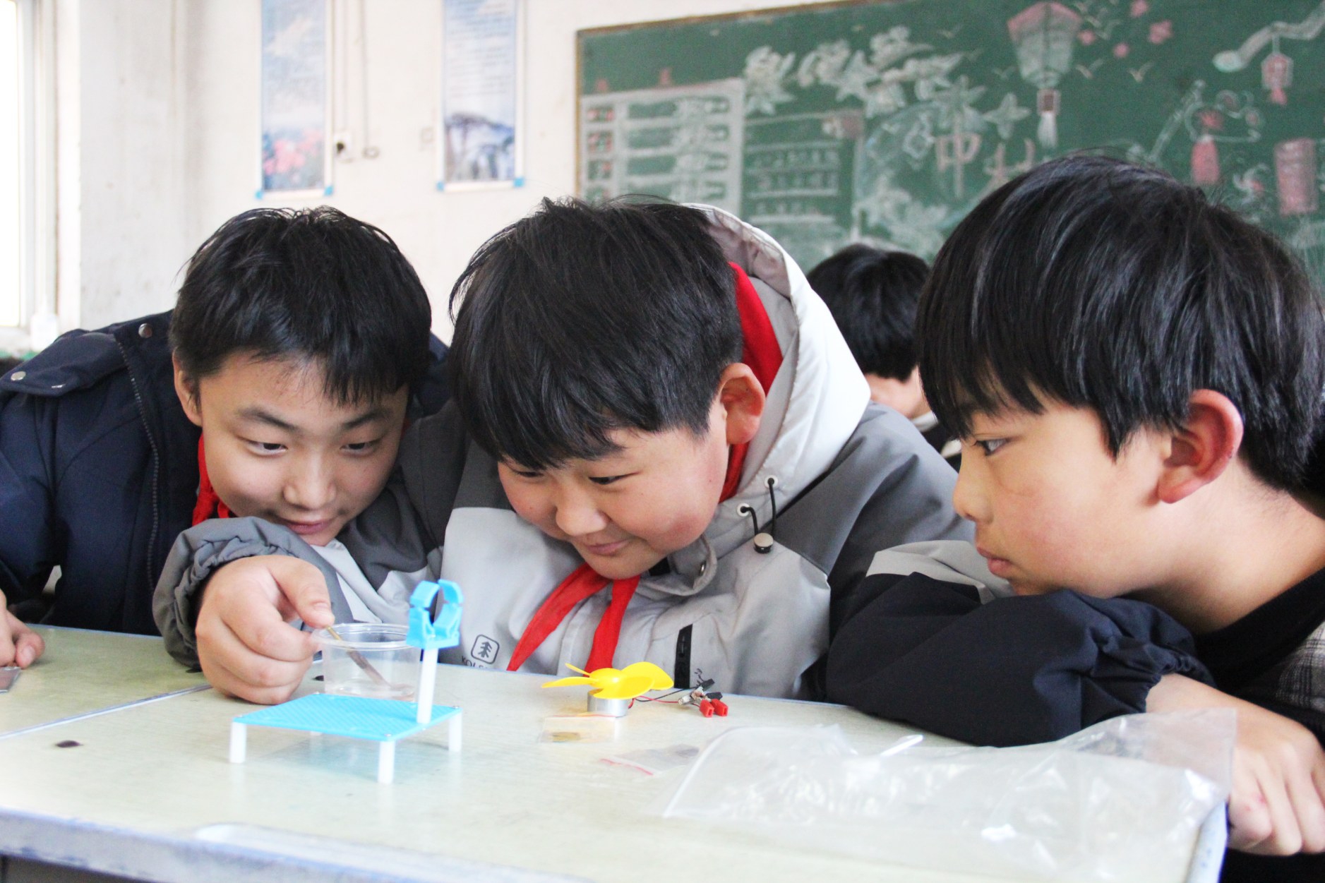 “老師,老師,我也要試!”演示結束,孩子們熱情高漲,紛紛舉手。在王靜慧等大學生志愿者的分組指導下,孩子們小心翼翼地做起實驗。六年級學生張欣婷和小伙伴成功將液體變色,興奮地歡呼:“太神奇了!原來科學這么有趣!”