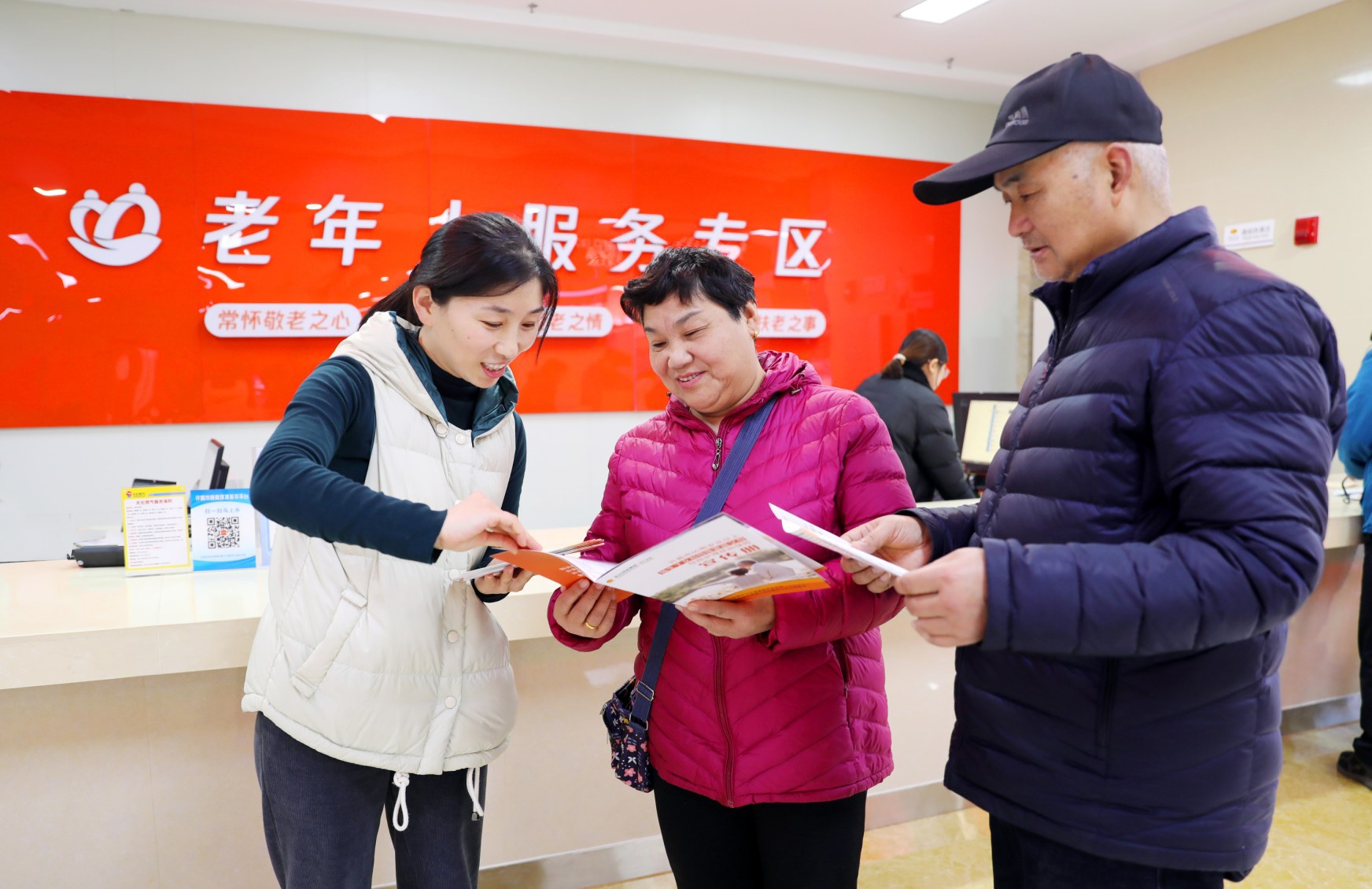 工作人員為前來(lái)辦理住院護(hù)理扶助申請(qǐng)的老人發(fā)放宣傳頁(yè),并耐心講解相關(guān)規(guī)定。本報(bào)記者 譚宜姝 攝