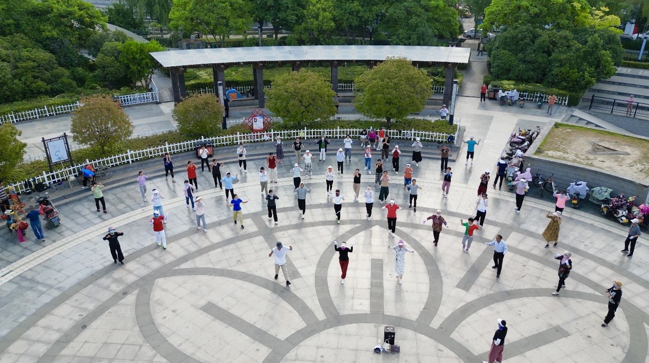 在許昌市區(qū)文峰游園,老人跳舞健身,樂(lè)享美好生活。資料圖片