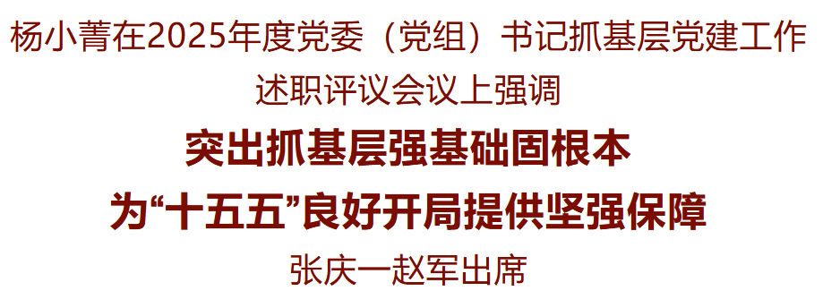 楊小菁強調,要堅持不懈以習近平新時代中國特色社會主義思想凝心鑄魂,堅持學用結合、以學促干,切實把學習成果轉化為干好本職工作、推動事業發展的實際成效。要強化基層基礎,統籌抓好農村、城市等各領域黨建,深化新興領域“兩個覆蓋”攻堅,織密建強上下貫通、執行有力的組織體系。要圍繞中心大局,抓好黨建服務高質量發展、引領高效能治理,切實把黨的組織優勢轉化為發展動能和治理效能。要扛穩壓實責任,帶動形成一級抓一級、層層抓落實的良好局面。