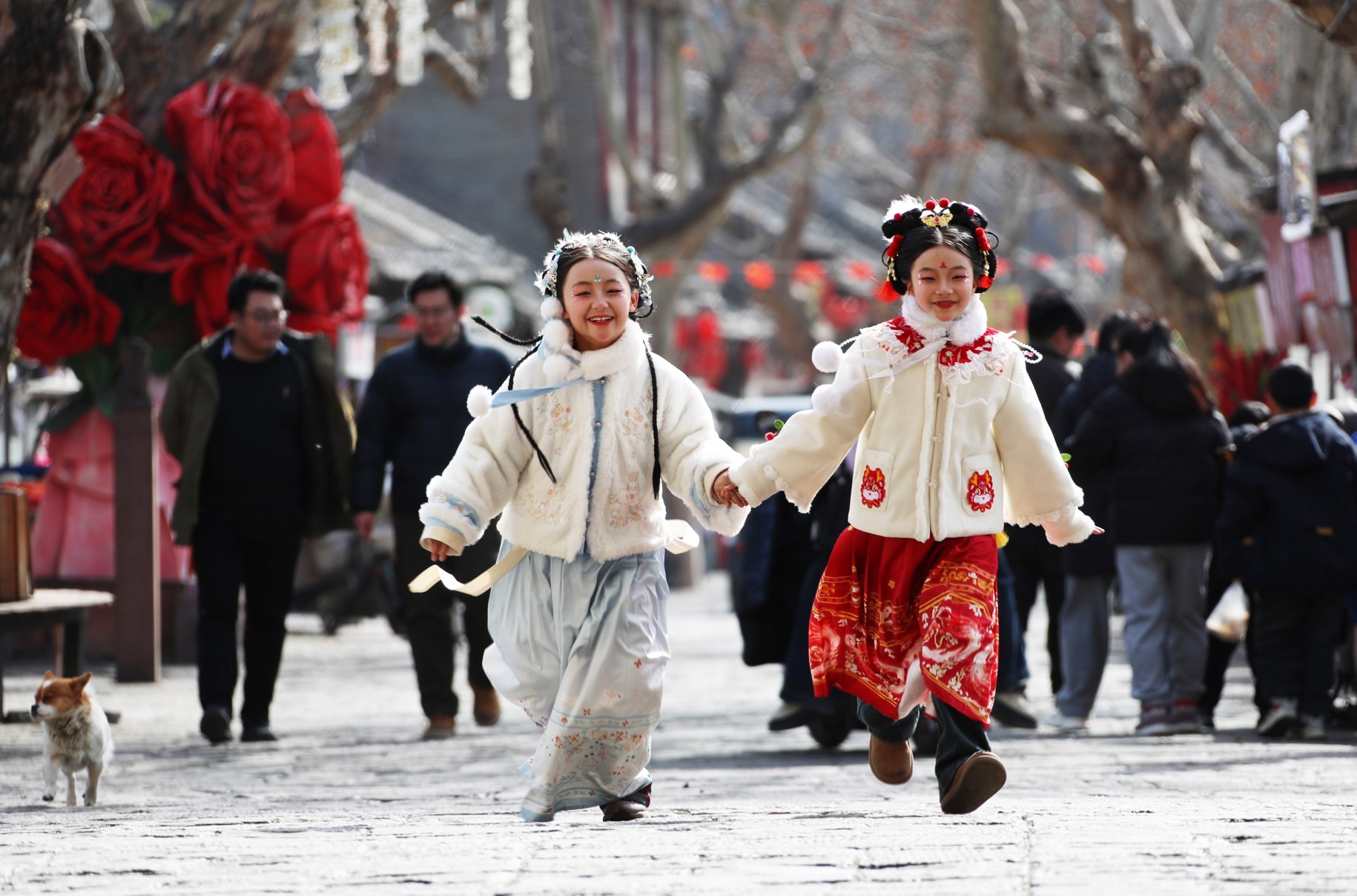 2月10日,小朋友在襄城縣明清古街游玩。本報記者 牛書培 攝
