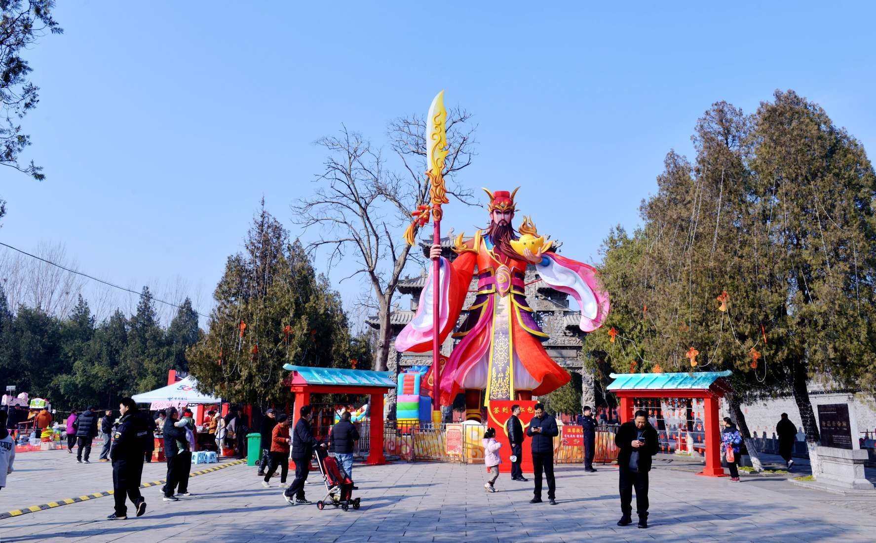 2月21日,灞陵橋景區。該景區設置的大型卡通關公像吸引了眾多游客。本報記者 呂科 攝